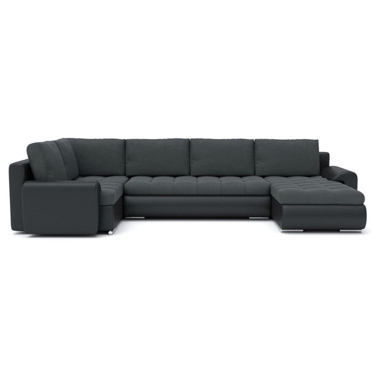 Rozkládací rohová sedací souprava TOKIO Šedá/černá eko-kůže Levá
