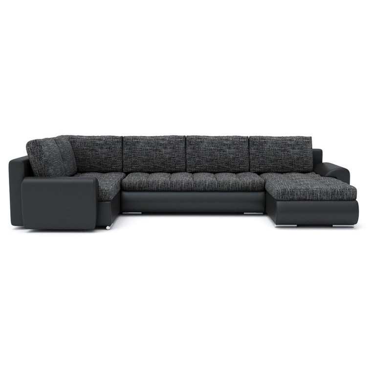 Rozkládací rohová sedací souprava TOKIO Tmavě šedá/černá eko-kůže Levá