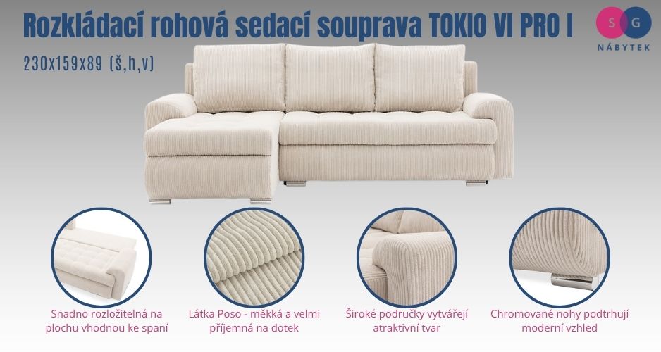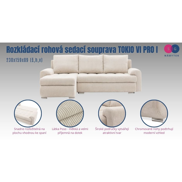 Rozkládací rohová sedací souprava TOKIO VI PRO I.