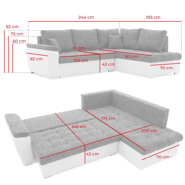 Rozkládací rohová sedací souprava VEGAS 245/190.
