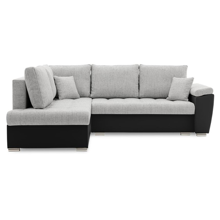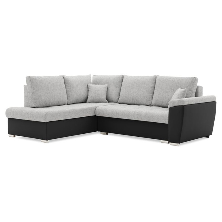 Rozkládací rohová sedací souprava VEGAS 245/190 Světle šedá/černá eko-kůže Levá