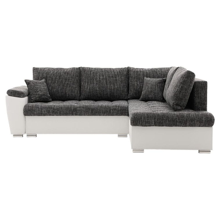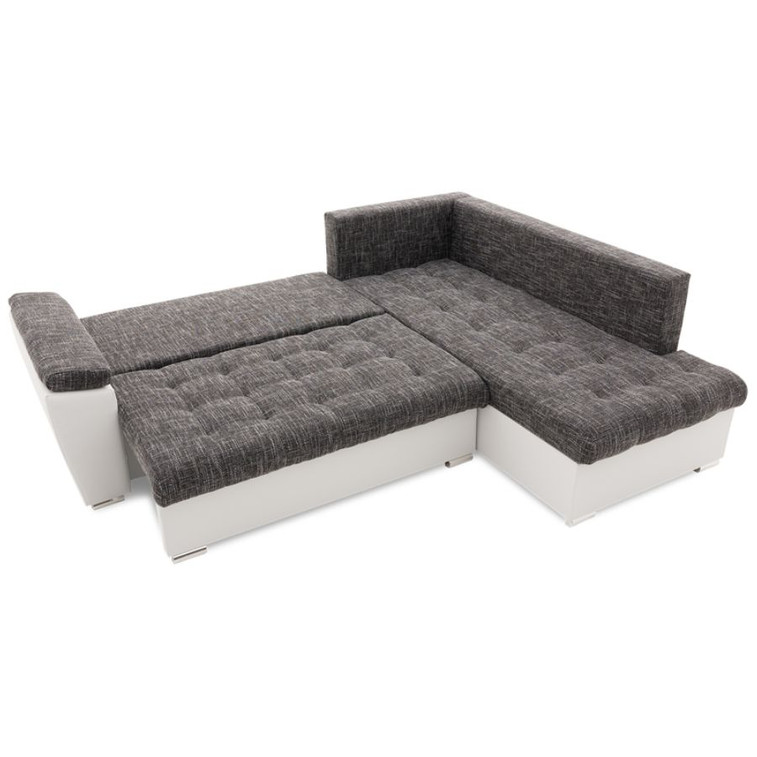 Rozkládací rohová sedací souprava VEGAS 245/190 Tmavě šedá/bílá eko-kůže Pravá