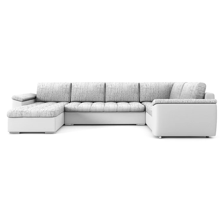 Rozkládací rohová sedací souprava VEGAS 315/195 Světle šedá/bílá eko-kůže Pravá