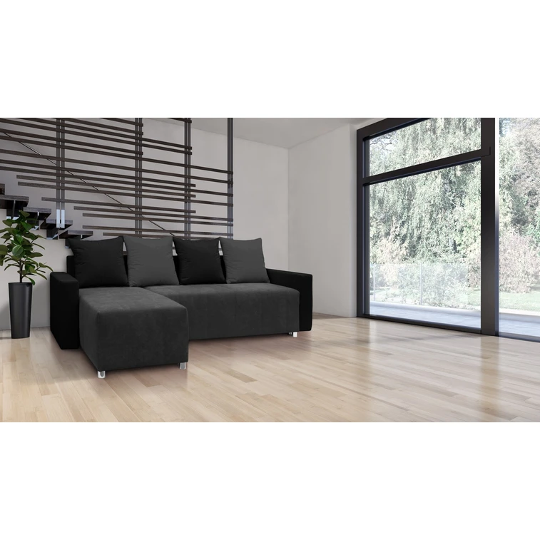 Rozkládací rohová sedačka FILIP 2 Tmavě šedá/černá