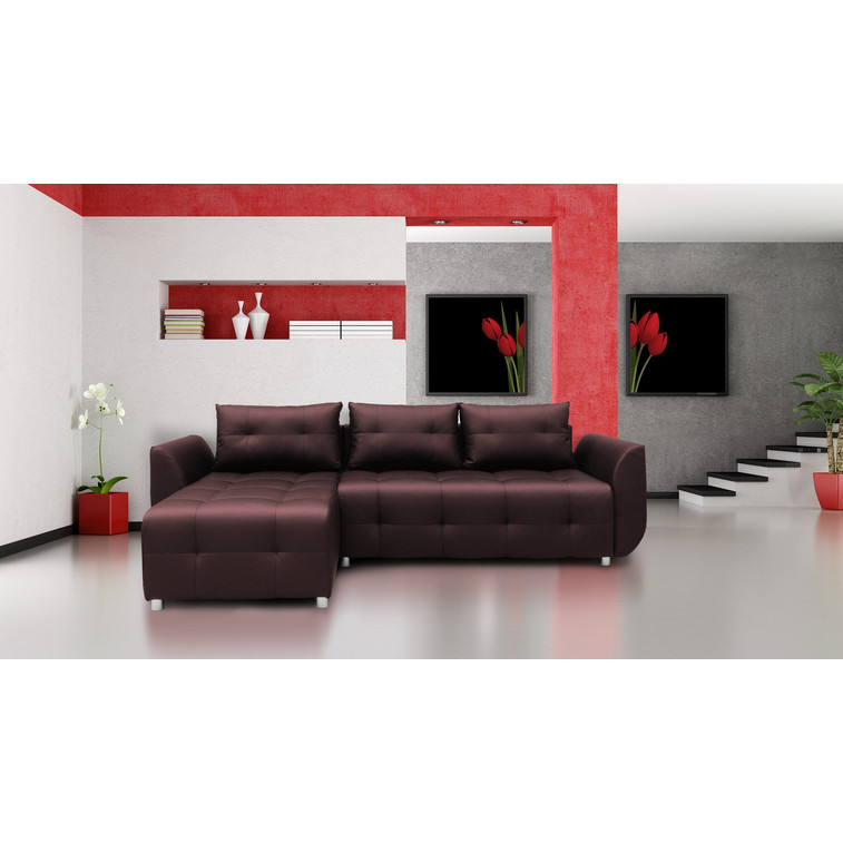 Rozkládací rohová sedačka SARA Tmavě hnědá
