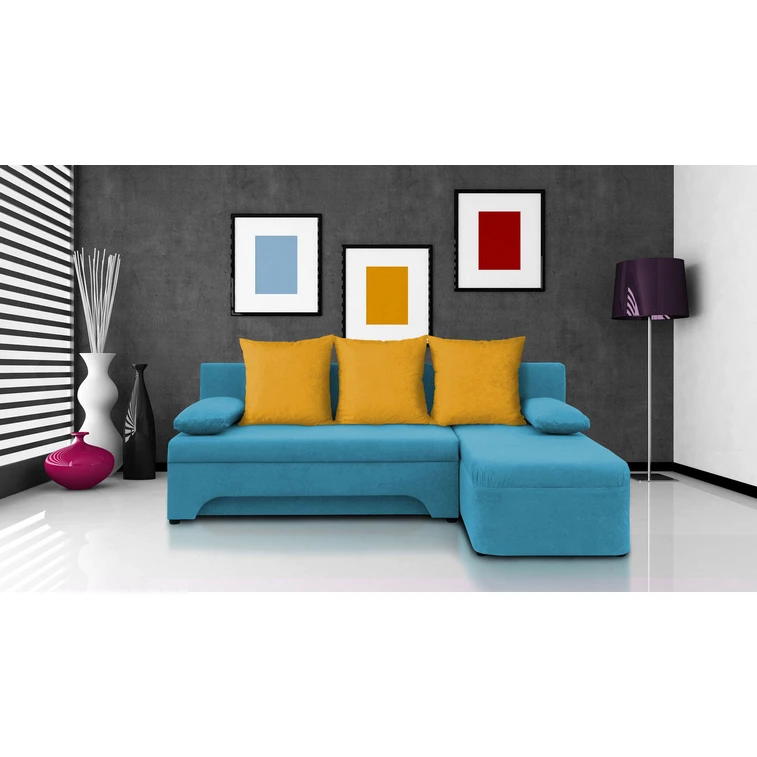 Rozkládací rohová sedačka VALERIE Světle modrá Žlutá