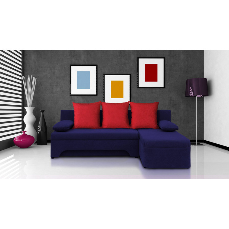 Rozkládací rohová sedačka VALERIE Tmavě modrá Červená