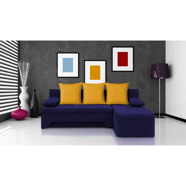 Rozkládací rohová sedačka VALERIE Tmavě modrá Žlutá