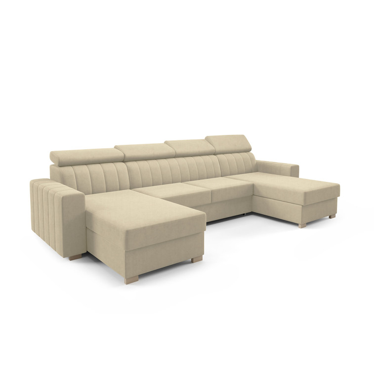 Pevná konstrukce ze dřeva a OSB desky. Snadné rozkládání sedací soupravy na lůžkovou podobu. Moderní design vhodný do všech současných interiérů. Nastavitelné opěrky hlavy.