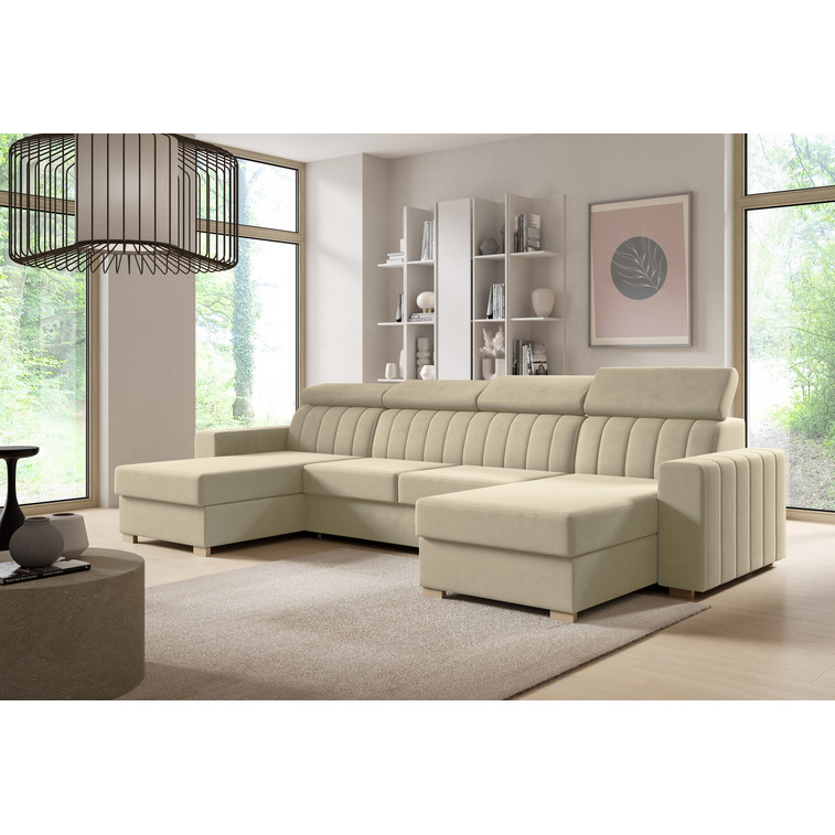Pevná konstrukce ze dřeva a OSB desky. Snadné rozkládání sedací soupravy na lůžkovou podobu. Moderní design vhodný do všech současných interiérů. Nastavitelné opěrky hlavy.