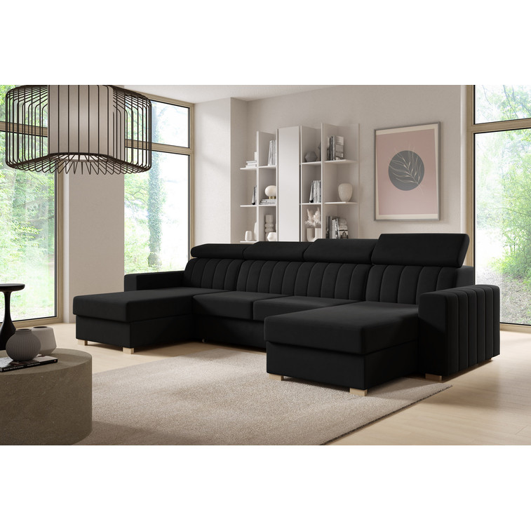 Pevná konstrukce ze dřeva a OSB desky. Snadné rozkládání sedací soupravy na lůžkovou podobu. Moderní design vhodný do všech současných interiérů. Nastavitelné opěrky hlavy.