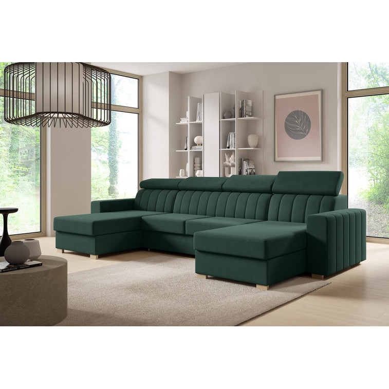 Pevná konstrukce ze dřeva a OSB desky. Snadné rozkládání sedací soupravy na lůžkovou podobu. Moderní design vhodný do všech současných interiérů. Nastavitelné opěrky hlavy.