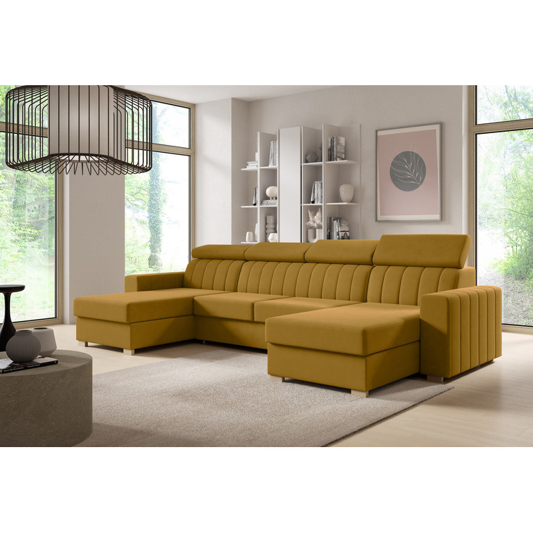 Pevná konstrukce ze dřeva a OSB desky. Snadné rozkládání sedací soupravy na lůžkovou podobu. Moderní design vhodný do všech současných interiérů. Nastavitelné opěrky hlavy.