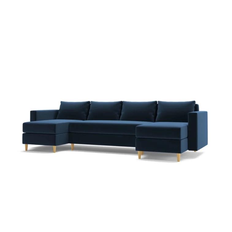 Je vyrobena ve tvaru písmene U. Nábytek má velké pohodlné polštáře. Prvky z masivního dřeva použité v rámu zvyšují odolnost a tuhost celé konstrukce a to se následně promítne do mnoha let bezproblémového používání. Rozkládací pohovka je samostatně stojící kus nábytku, který můžete umístit i do středu místnosti.