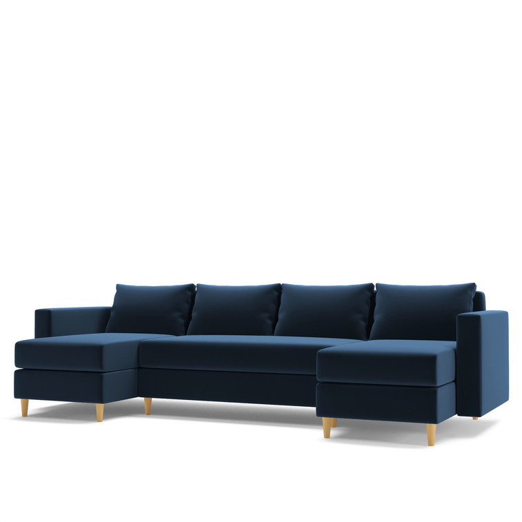 Je vyrobena ve tvaru písmene U. Nábytek má velké pohodlné polštáře. Prvky z masivního dřeva použité v rámu zvyšují odolnost a tuhost celé konstrukce a to se následně promítne do mnoha let bezproblémového používání. Rozkládací pohovka je samostatně stojící kus nábytku, který můžete umístit i do středu místnosti.