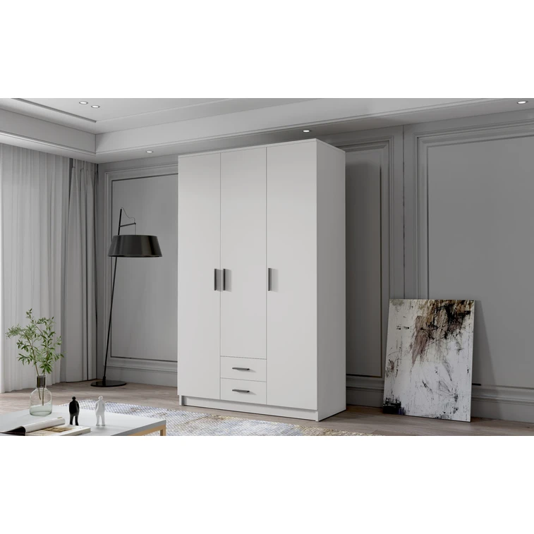 Šatní skříň ADA I 120 cm - bílá/černé úchytky.