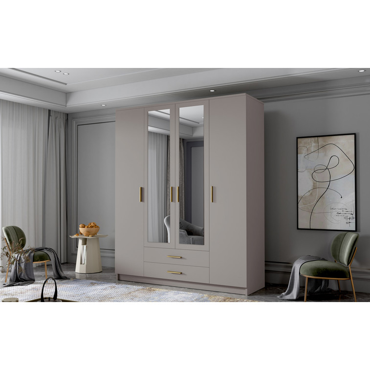 Šatní skříň ADA II 160 cm - béžová/zlaté úchytky.