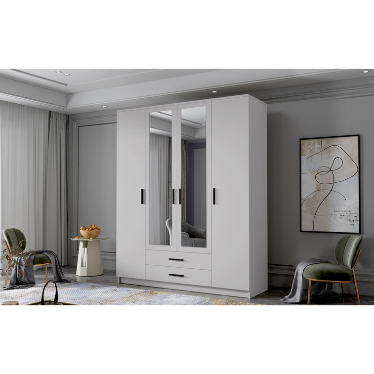 Šatní skříň ADA II 160 cm - bílá/černé úchytky.