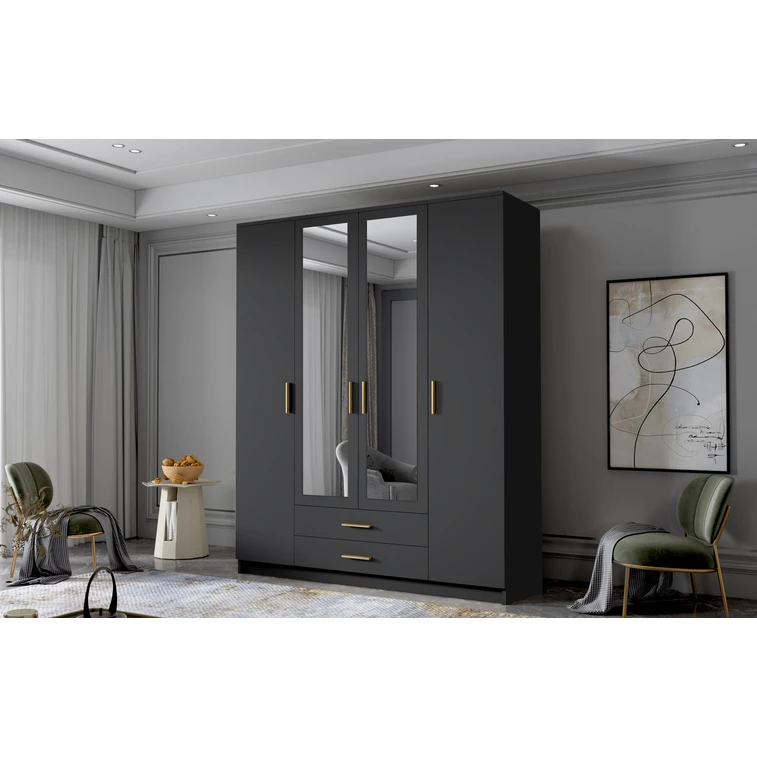 Šatní skříň ADA II 160 cm - černá/zlaté úchytky.