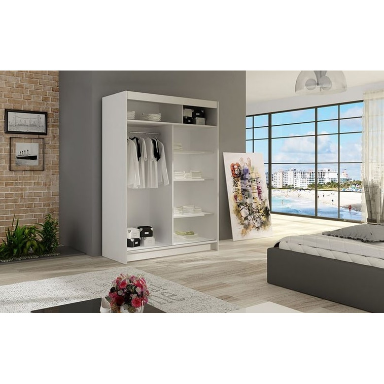 Šatní skříň Basti I je vyrobena v moderním designu a nabízí velké množství praktického úložného prostoru. Neocenitelný je systém trendových posuvných dveří, které usnadňují manipulaci a šetří prostor v interiéru.