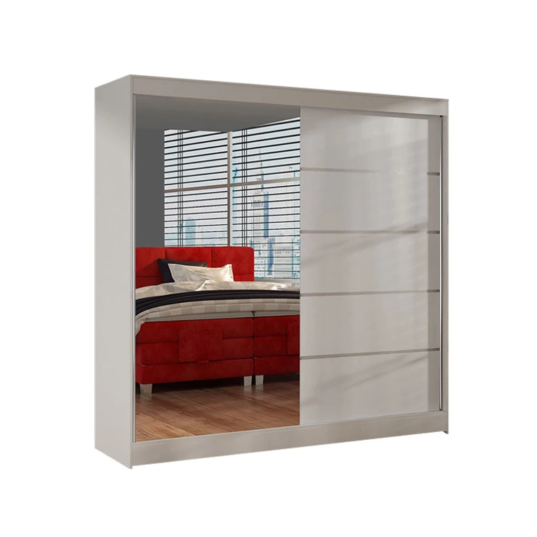 Prostorná šatní skříň Basti III je vyrobena v moderním designu a nabízí velké množství praktického úložného prostoru.