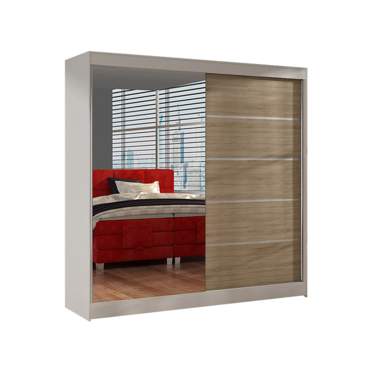 Prostorná šatní skříň Basti III je vyrobena v moderním designu a nabízí velké množství praktického úložného prostoru.