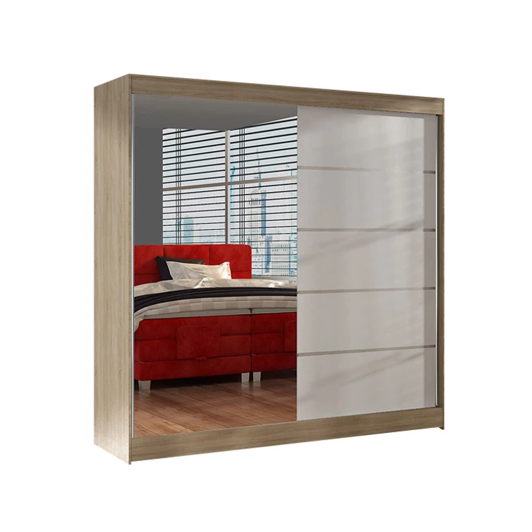 Prostorná šatní skříň Basti III je vyrobena v moderním designu a nabízí velké množství praktického úložného prostoru.