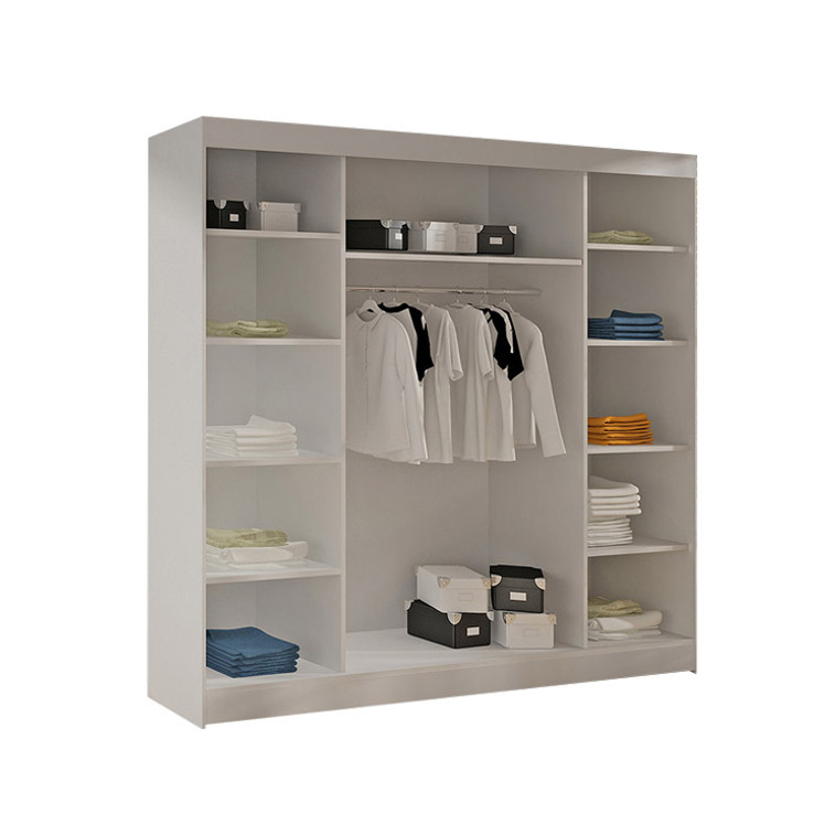 Šatní skříň Basti IV je vyrobena v moderním designu a nabízí velké množství praktického úložného prostoru. Neocenitelný je systém trendových posuvných dveří, které usnadňují manipulaci a šetří prostor v interiéru.