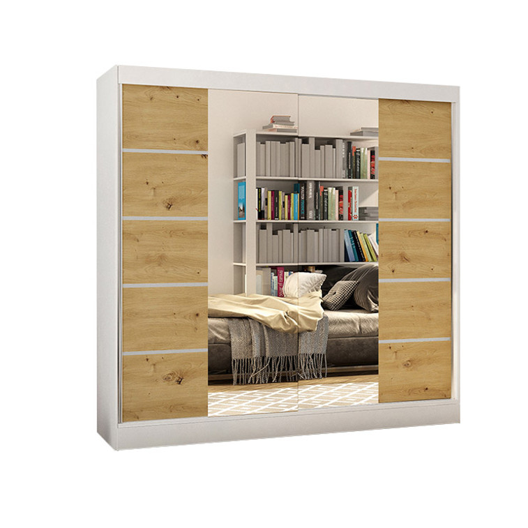 Prostorná šatní skříň Basti V je vyrobena v moderním designu a nabízí velké množství praktického úložného prostoru.
