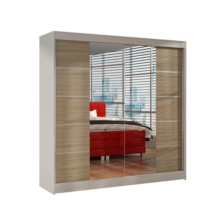 Šatní skříň BASTI V šířka 200 cm - bílá/dub sonoma