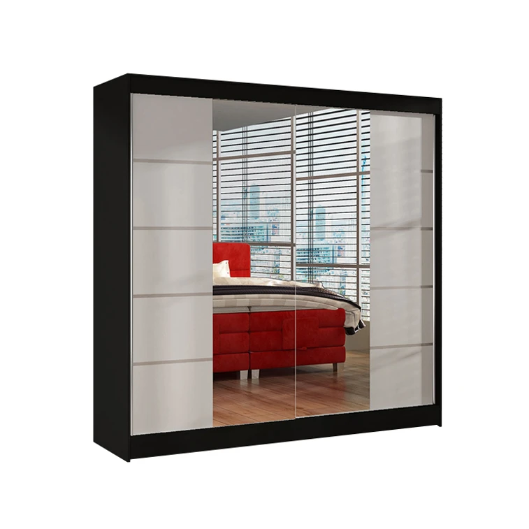 Prostorná šatní skříň Basti V je vyrobena v moderním designu a nabízí velké množství praktického úložného prostoru.