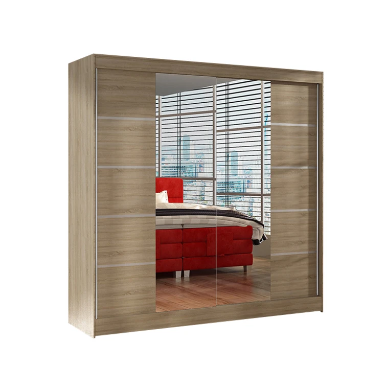 Prostorná šatní skříň Basti V je vyrobena v moderním designu a nabízí velké množství praktického úložného prostoru.