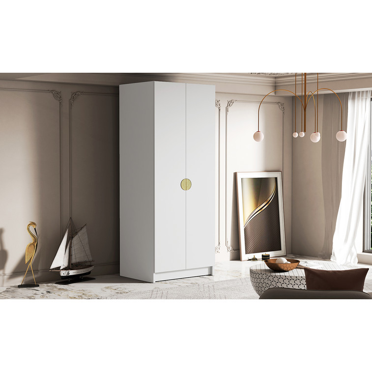 Šatní skříň BOSTON 100 cm - bílá/zlaté úchytky.