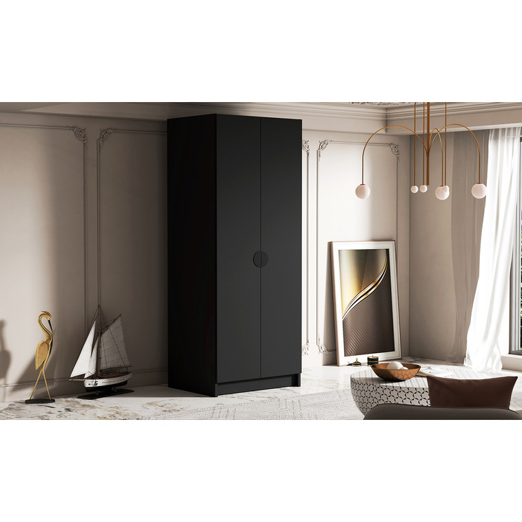 Šatní skříň BOSTON 100 cm - černá/černé úchytky.
