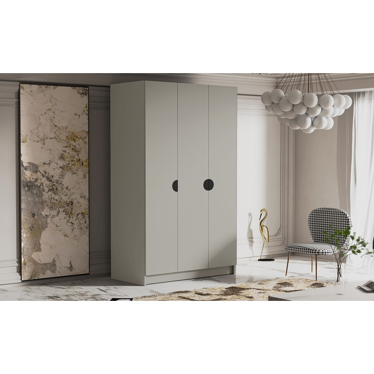 Šatní skříň CAMON 150 cm - béžová/černé úchytky.