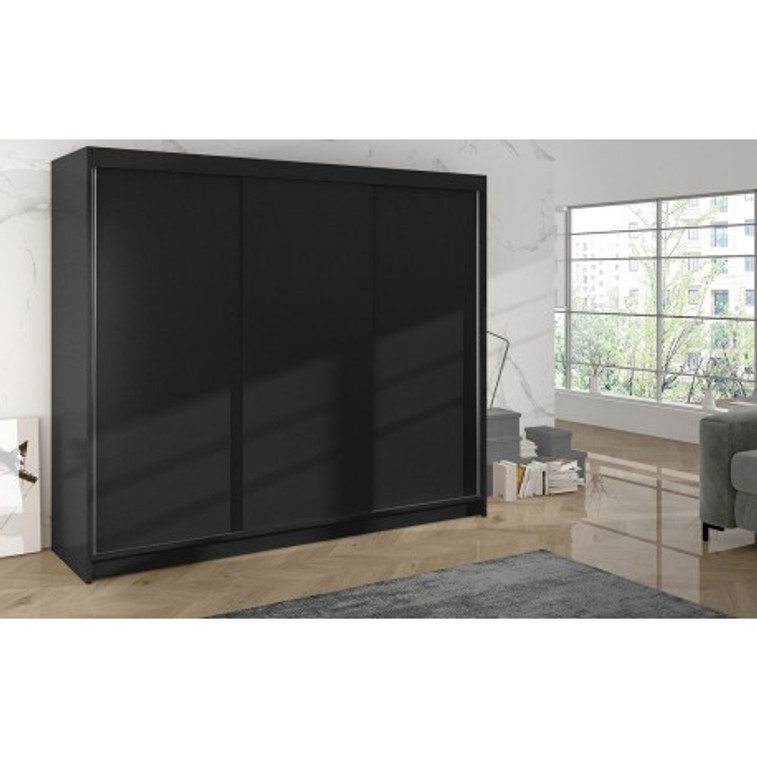 Šatní skříň Derby II je vyrobena v moderním designu a nabízí velké množství praktického úložného prostoru. Neocenitelný je systém trendových posuvných dveří, které usnadňují manipulaci a šetří prostor v interiéru.