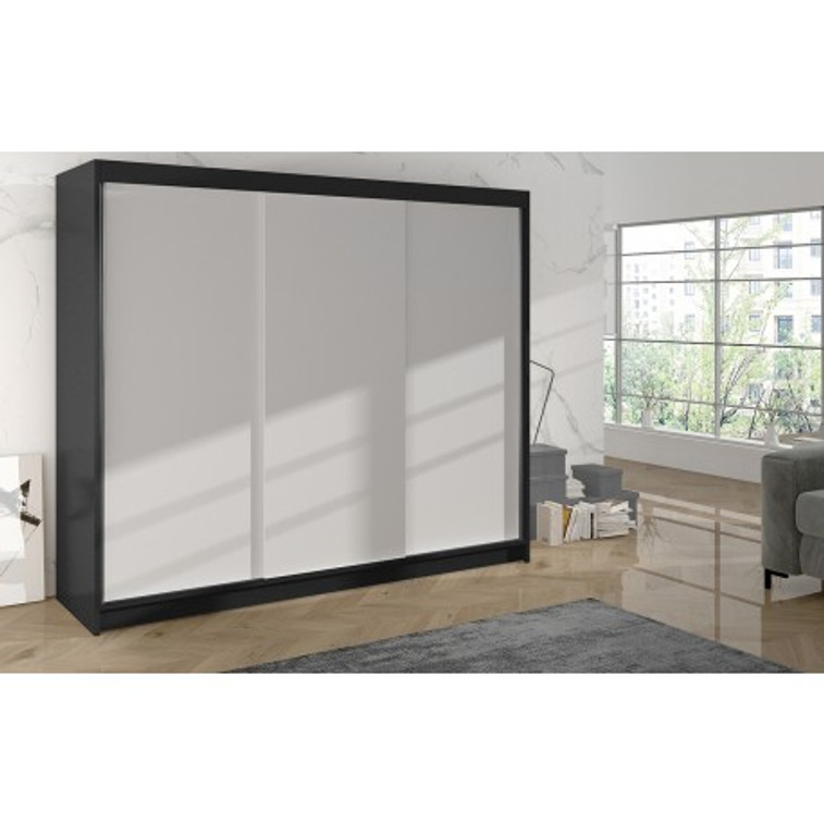 Šatní skříň DERBY II - 200 cm Černá/Bílá