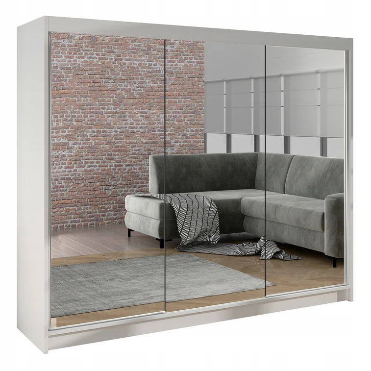 Šatní skříň Derby III je vyrobena v moderním designu a nabízí velké množství praktického úložného prostoru. Neocenitelný je systém trendových posuvných dveří se zrcadlem, které usnadňují manipulaci a šetří prostor v interiéru.