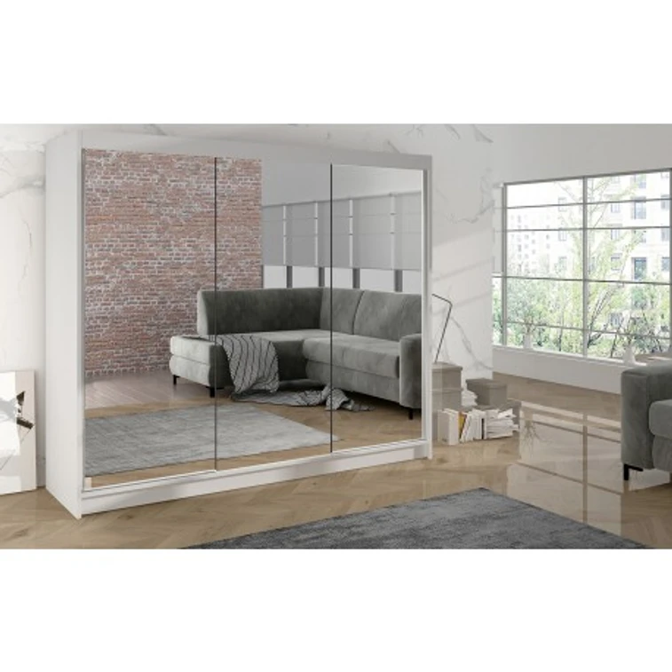 Šatní skříň Derby III je vyrobena v moderním designu a nabízí velké množství praktického úložného prostoru. Neocenitelný je systém trendových posuvných dveří se zrcadlem, které usnadňují manipulaci a šetří prostor v interiéru.