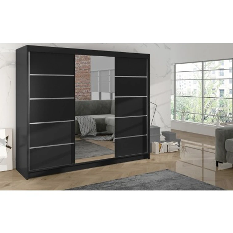 Šatní skříň Derby VI je vyrobena v moderním designu a nabízí velké množství praktického úložného prostoru. Neocenitelný je systém trendových posuvných dveří se zrcadlem, které usnadňují manipulaci a šetří prostor v interiéru.