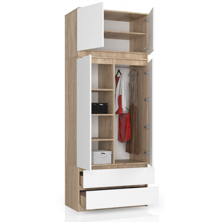 Šatní skříň s nadstavbou S90 2 dvířka 2 zásuvky dub sonoma/bílá
