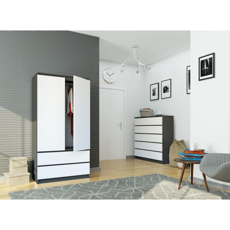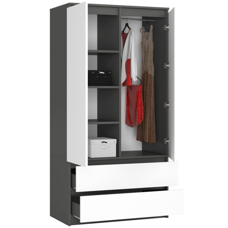 Šatní skříň S90 2D 2SZ CLP, grafit/bílá.