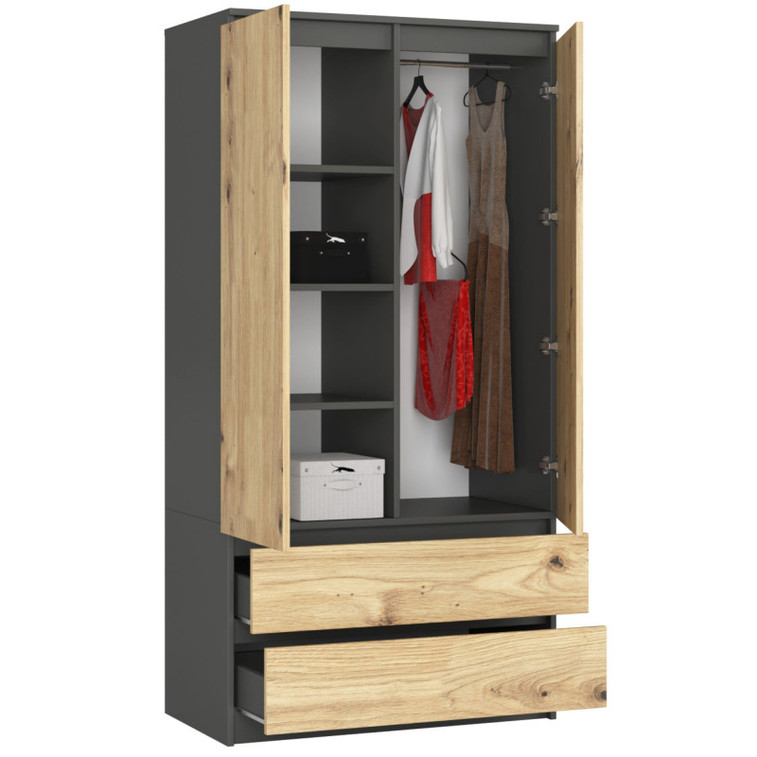 Šatní skříň S90 2D 2SZ CLP, grafit/dub artisan.