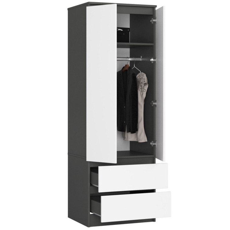 Šatní skříň STAR S60 2D 2SZ, grafit/bílá.
