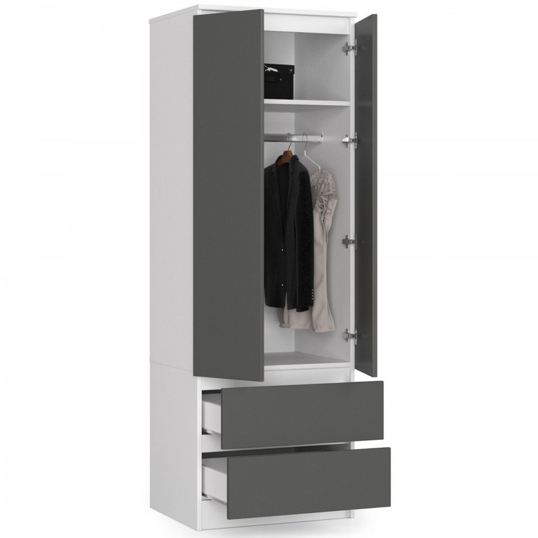 Tato šatní skříň Vás okouzlí svou jednoduchostí a elegancí. Skvěle doplní obývací pokoj, velké vstupní haly nebo ložnici. Uvnitř skříně je police a šatní tyč