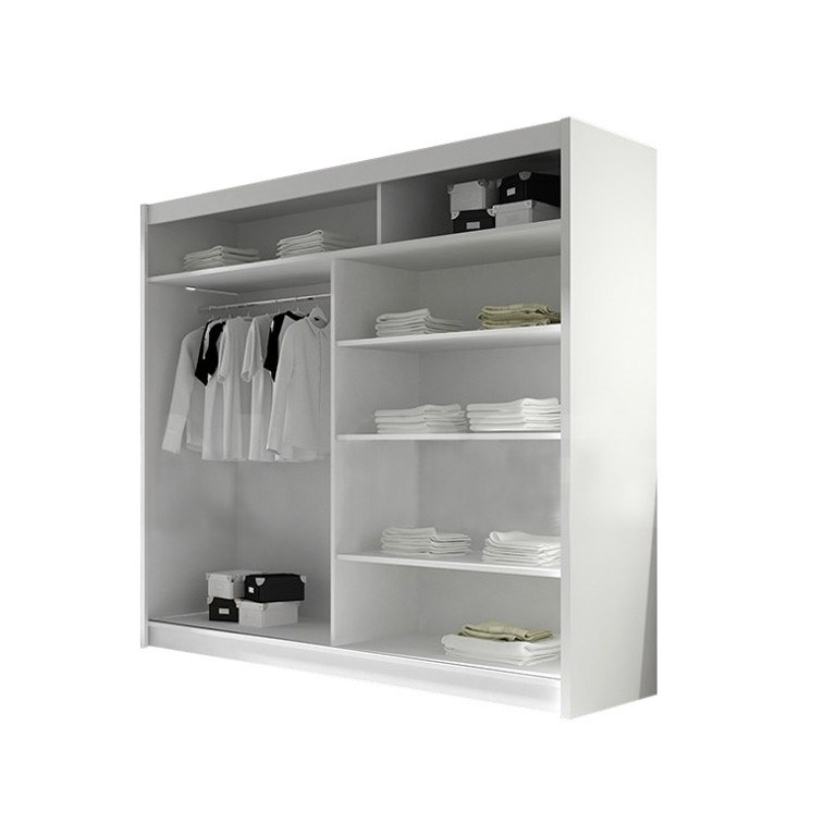 Šatní skříň Talin I je vyrobena v moderním designu a nabízí velké množství praktického úložného prostoru. Systém posuvných dveří, které usnadňují manipulaci a šetří prostor v interiéru.