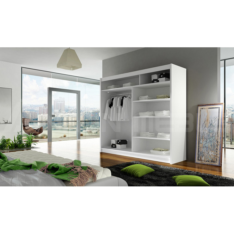 Šatní skříň Talin II je vyrobena v moderním designu a nabízí velké množství praktického úložného prostoru. Neocenitelný je systém trendových posuvných dveří, které usnadňují manipulaci a šetří prostor v interiéru.