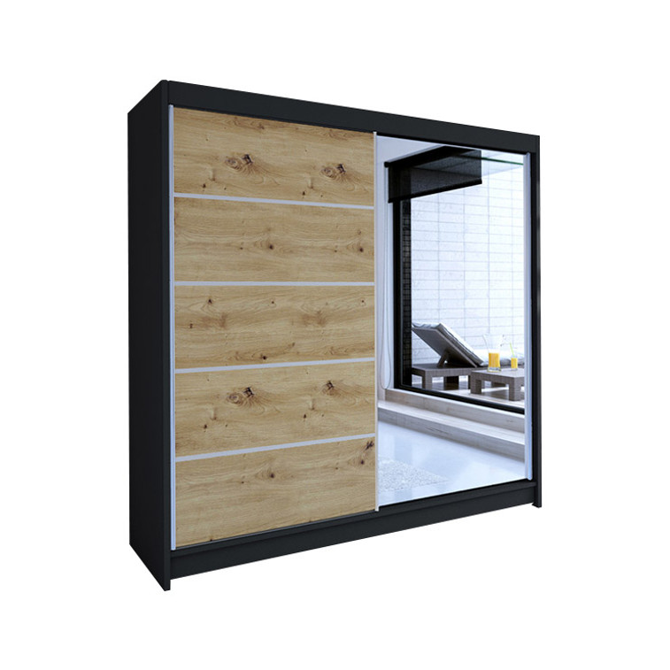 Šatní skříň Talin III je vyrobena v moderním designu a nabízí velké množství praktického úložného prostoru. Systém posuvných dveří, který usnadňuje manipulaci a šetří prostor v interiéru.