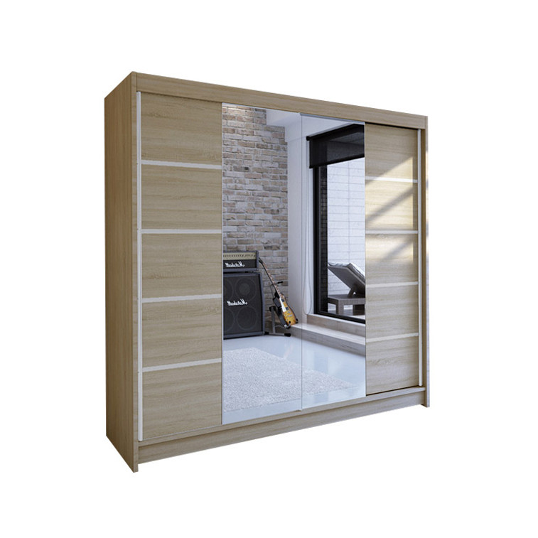 Šatní skříň Talin V je vyrobena v moderním designu a nabízí velké množství praktického úložného prostoru. Neocenitelný je systém trendových posuvných dveří, které usnadňují manipulaci a šetří prostor v interiéru.