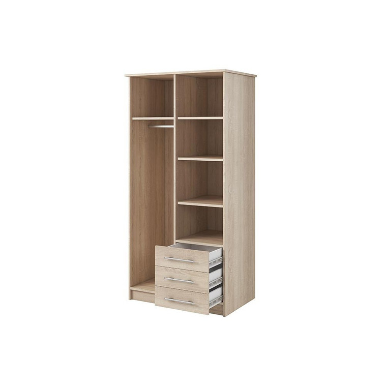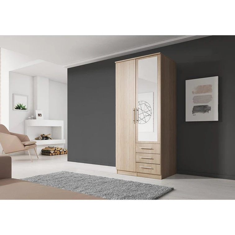 Skříň 2D SZANTAL se vyznačuje praktickým úložným prostorem a velkou kapacitou. V jeho prostorném interiéru najdete optimální počet polic i místo na pověšení oblečení. Skříň je navíc vybavena praktickými zásuvkami. Tento model se bude skvěle hodit jak do ložnice, šatny, tak do haly.